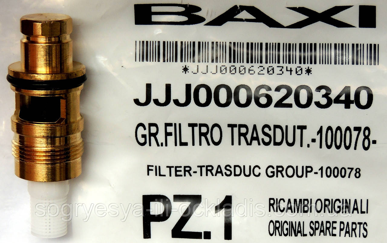 Датчик/реле ГВС/протока води латунний у складі фільтр пластмасовий (фірмова упаковка, пр-во Італія) котлів газових Baxi ЕСО 3, Western Pulsar та ін, артикул 711633400/ JJJ000620340/ 000620340/ 620340, код запчастин 0105/4.